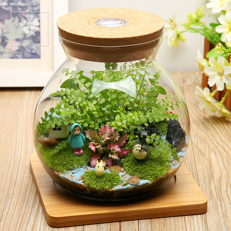 苔蘚微景觀生態瓶創意diy迷你植物盆栽辦公室植物龍貓擺件盆景 Terrarium Figurines Terrarium Diy Garden Decor